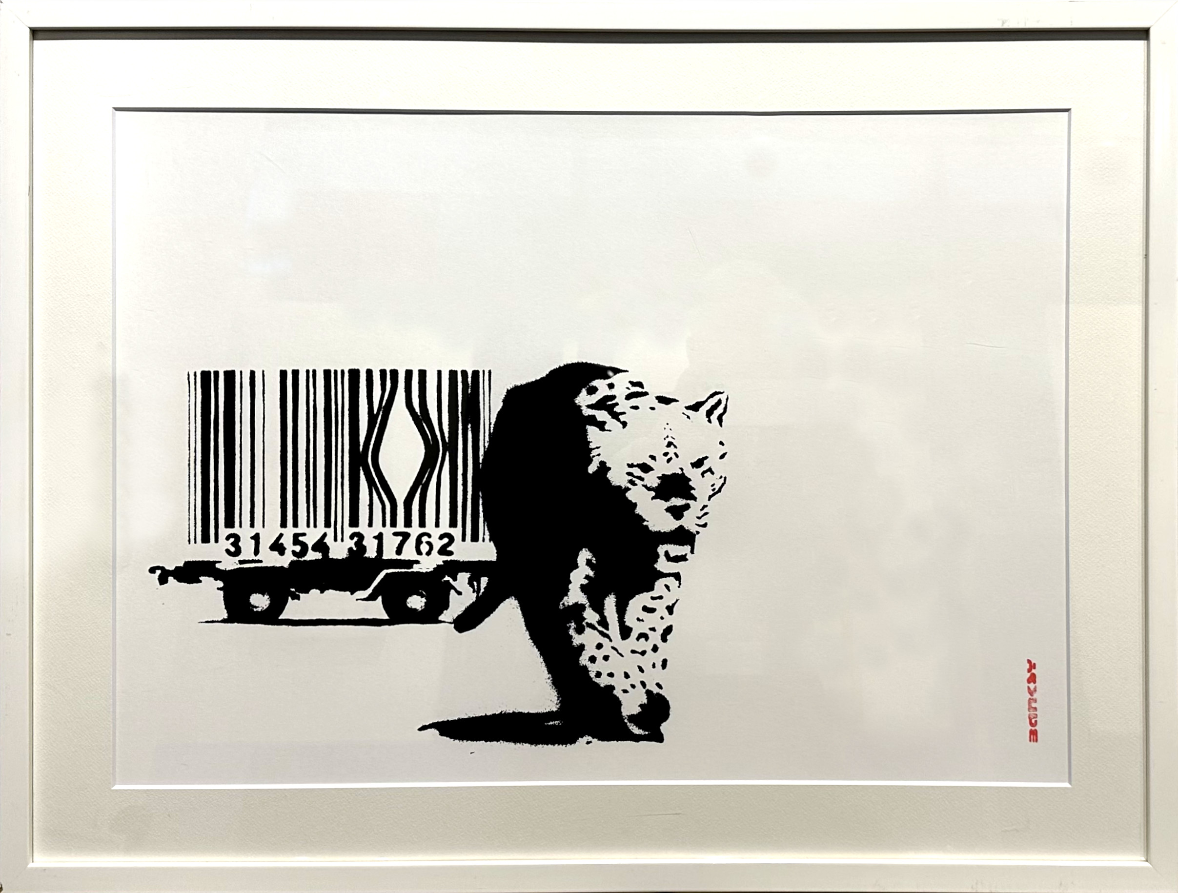 「Barcode Leopard」は、2002年に制作されたバンクシーの作品の一つです。バーコードの檻に閉じ込められたヒョウが描かれており、消費社会や大量生産、動物の権利など、様々な解釈が可能な作品です。