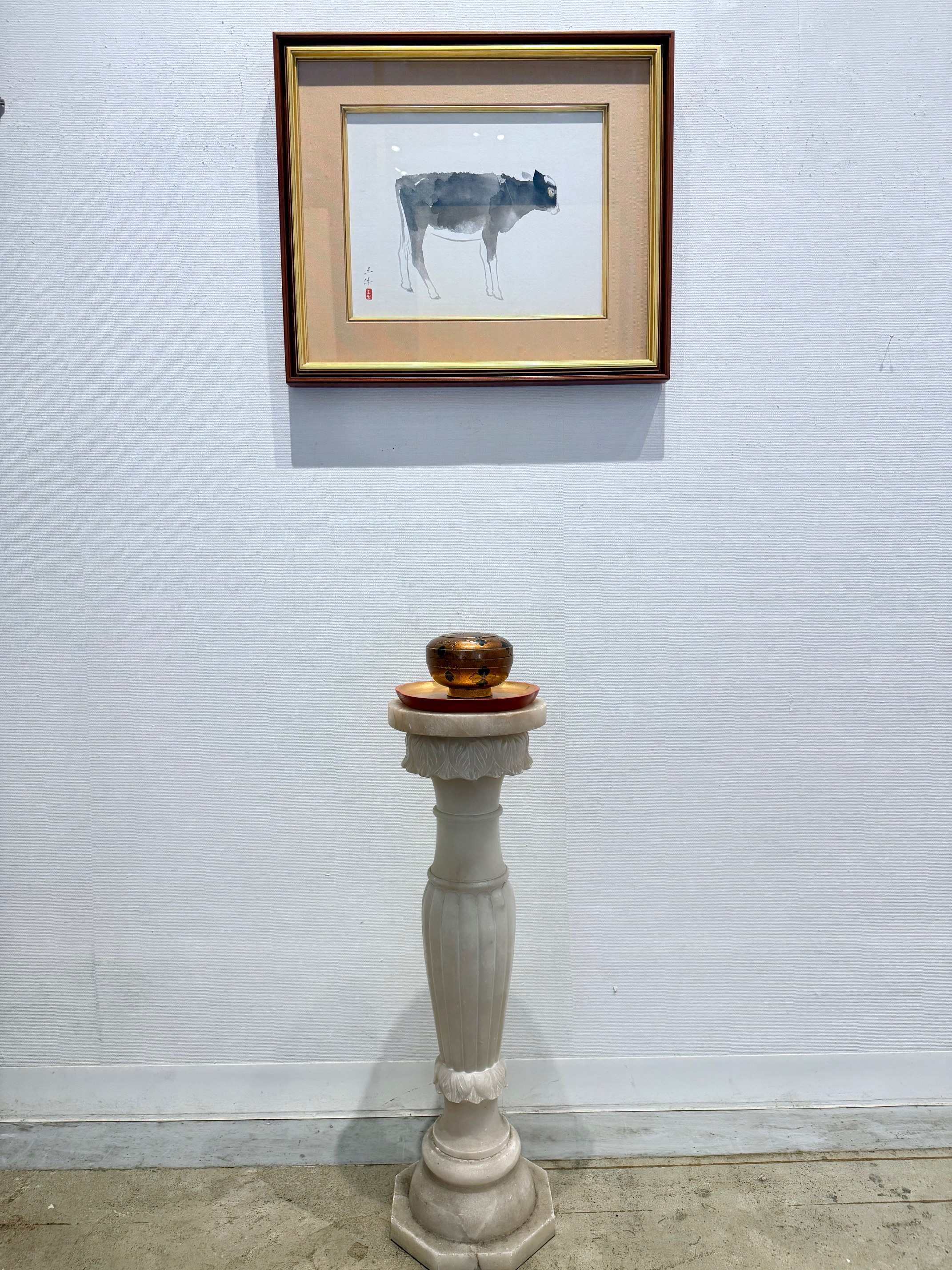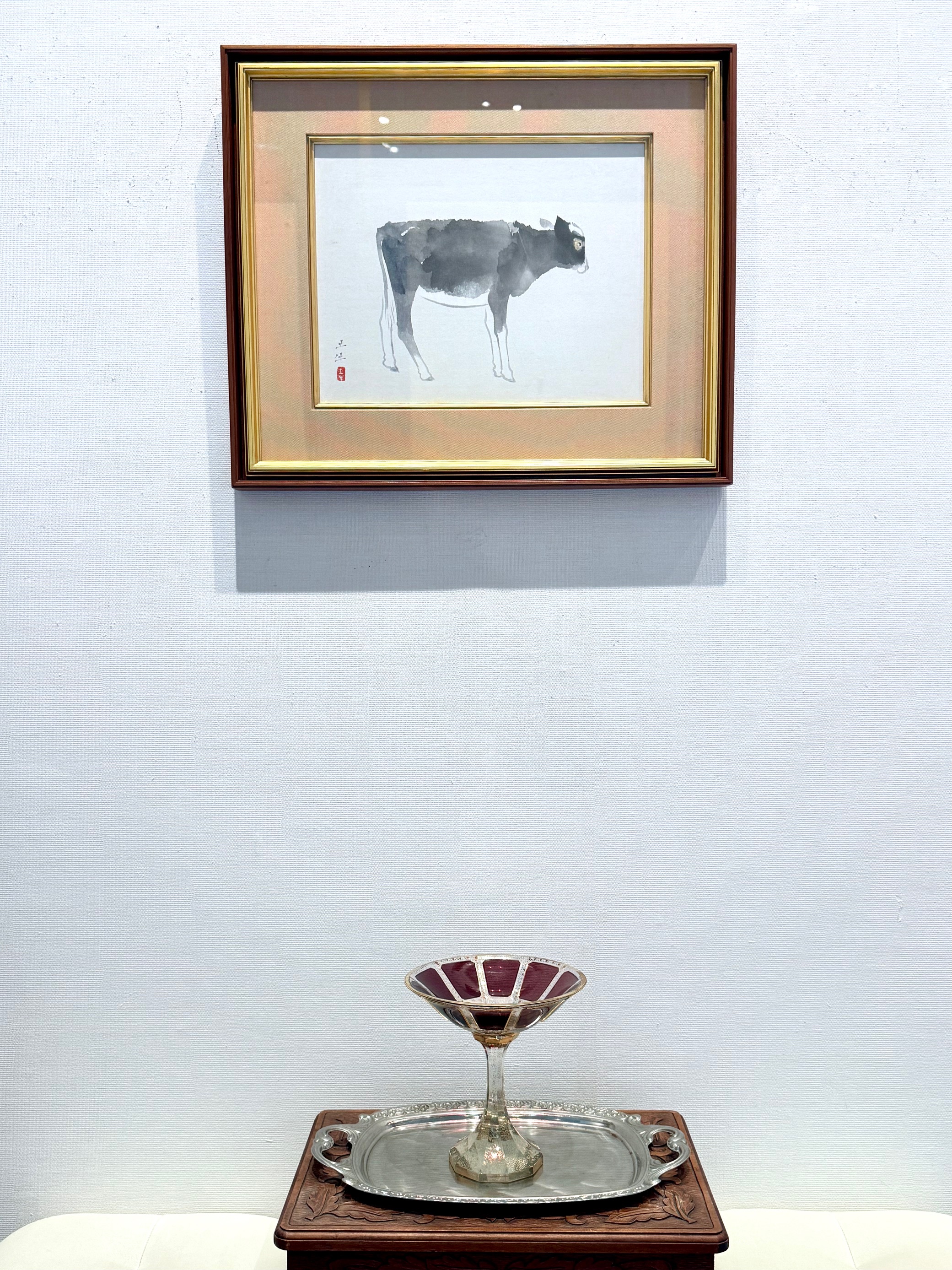 本作品の「牛」は、余分な線を削ぎ落とし、墨のにじみや濃淡を巧みに操ることで、その量感や穏やかな佇まいを見事に描き出しています。画面全体に広がる静謐な空気感は、土牛が晩年に到達した、物象を慈しむような優しい眼差しを物語っています。