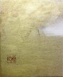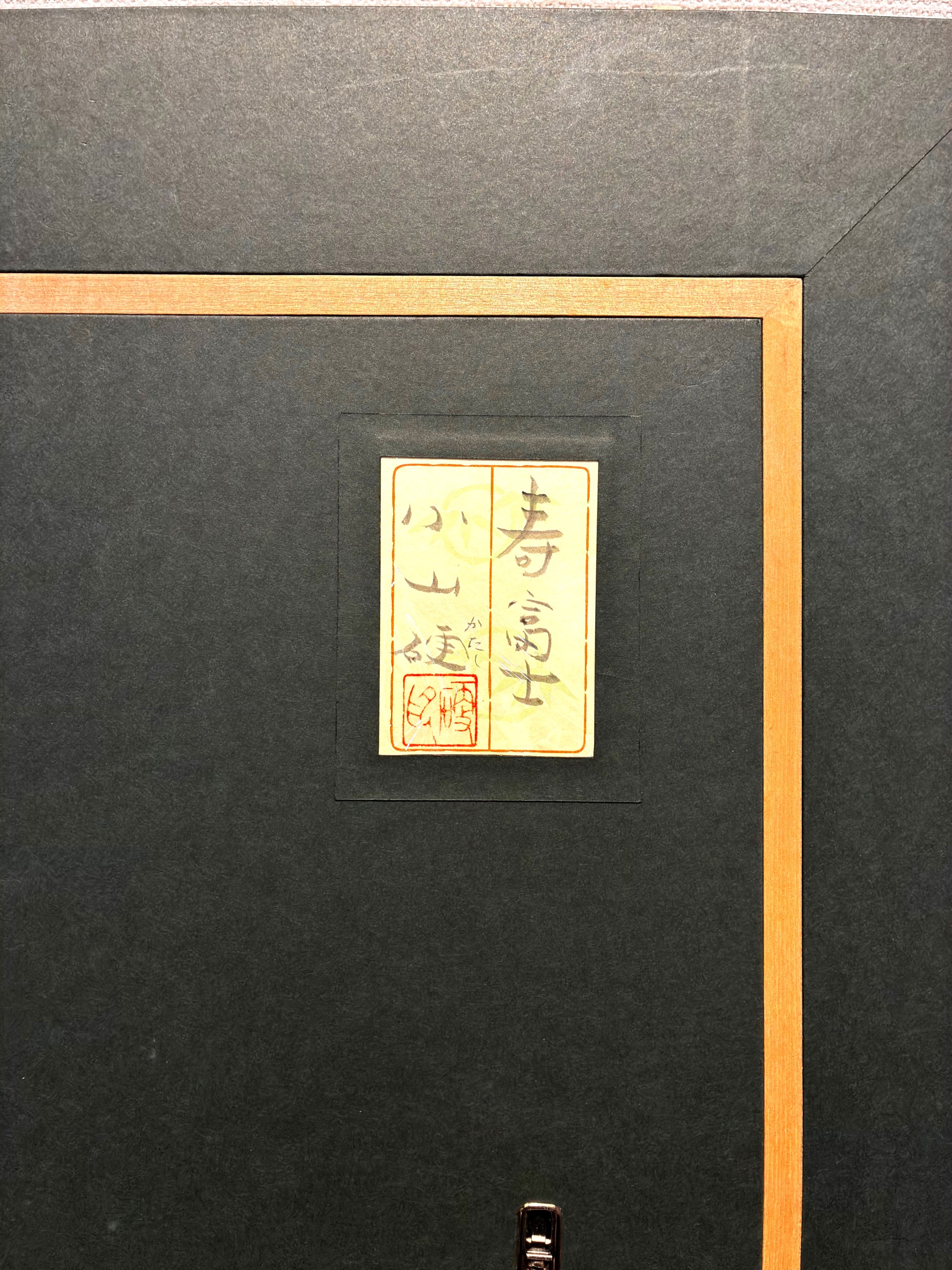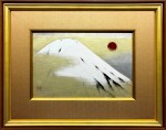 黄金色に輝く背景に、輝くような白の富士と、鮮やかに燃えるような太陽(日輪)。 タイトルの通り「寿(ことぶき)」を象徴するこの構成は、古来より日本人が愛してきた吉祥のモチーフですが、小山硬の手にかかれば、それは単なる伝統画を超えた「現代の祈り」へと昇華されます。