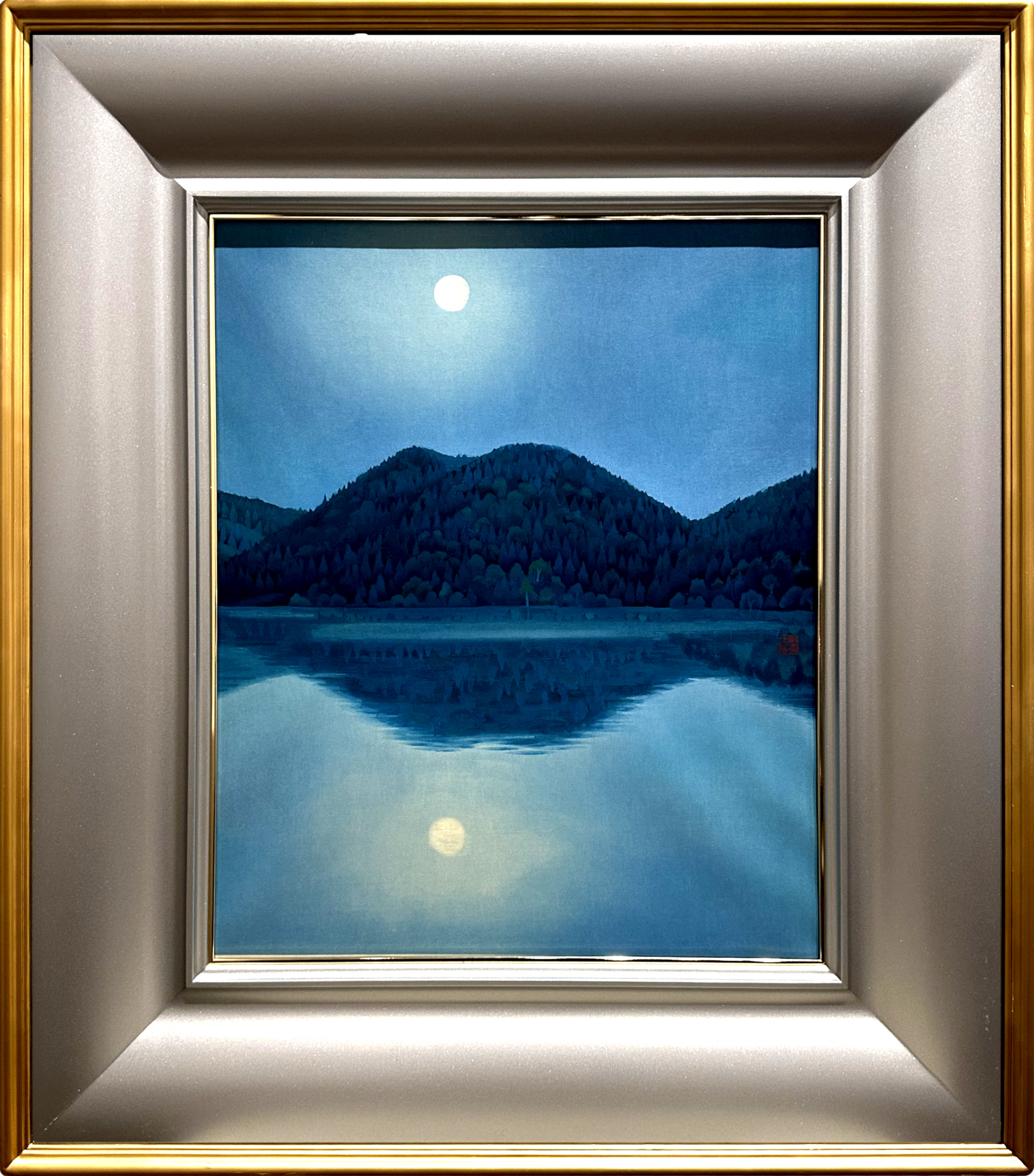 月に照らされた湖、静寂に過ぎる時間や自然を感じられる作品。