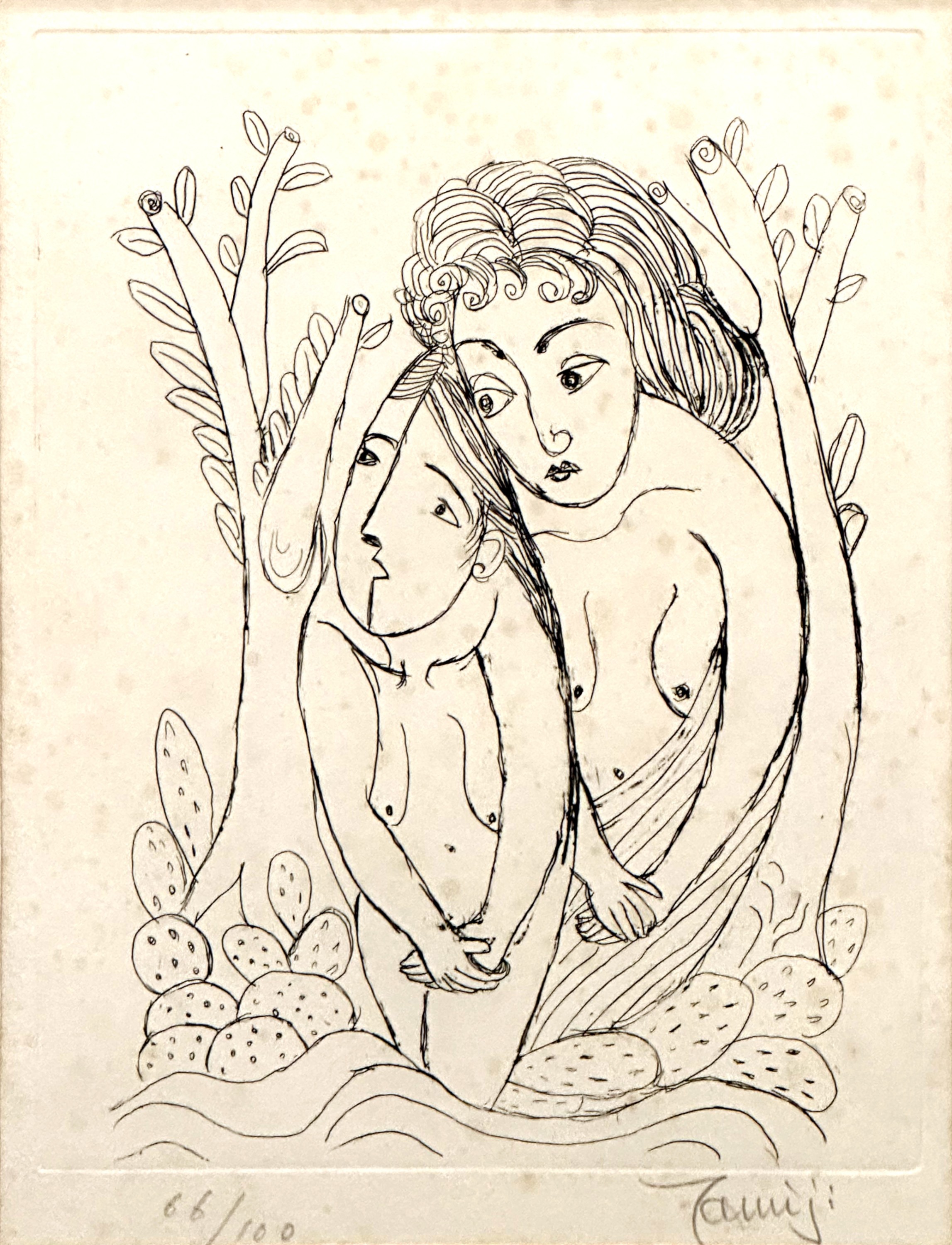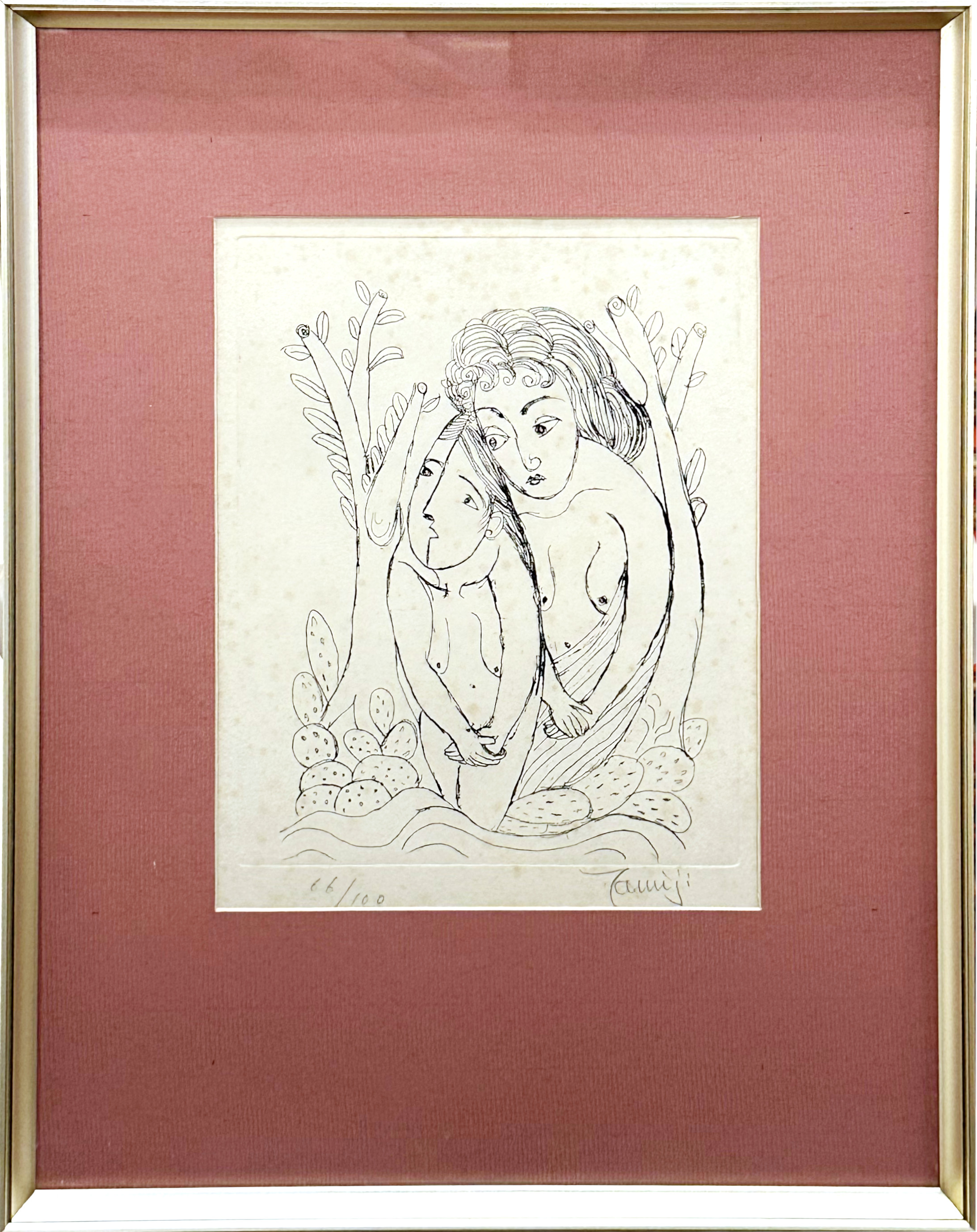 この度、ご紹介するのは、メキシコの大地を愛し、そこに生きる人々の生命力を描き続けた情熱の画家、北川民治(1894-1989)による、魅力あふれる版画作品「裸婦とサボテン」です。限定100部で制作された貴重な一枚、エディションナンバー66番が、確かな価値を物語っています。